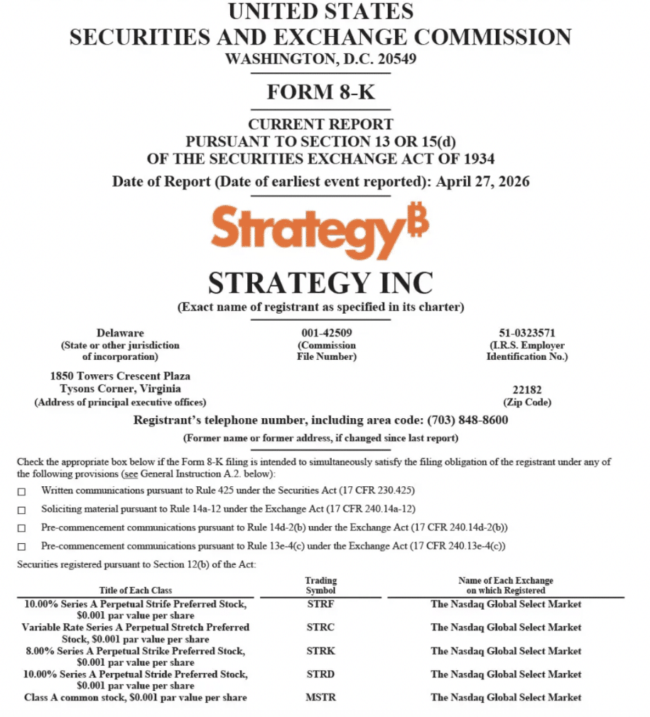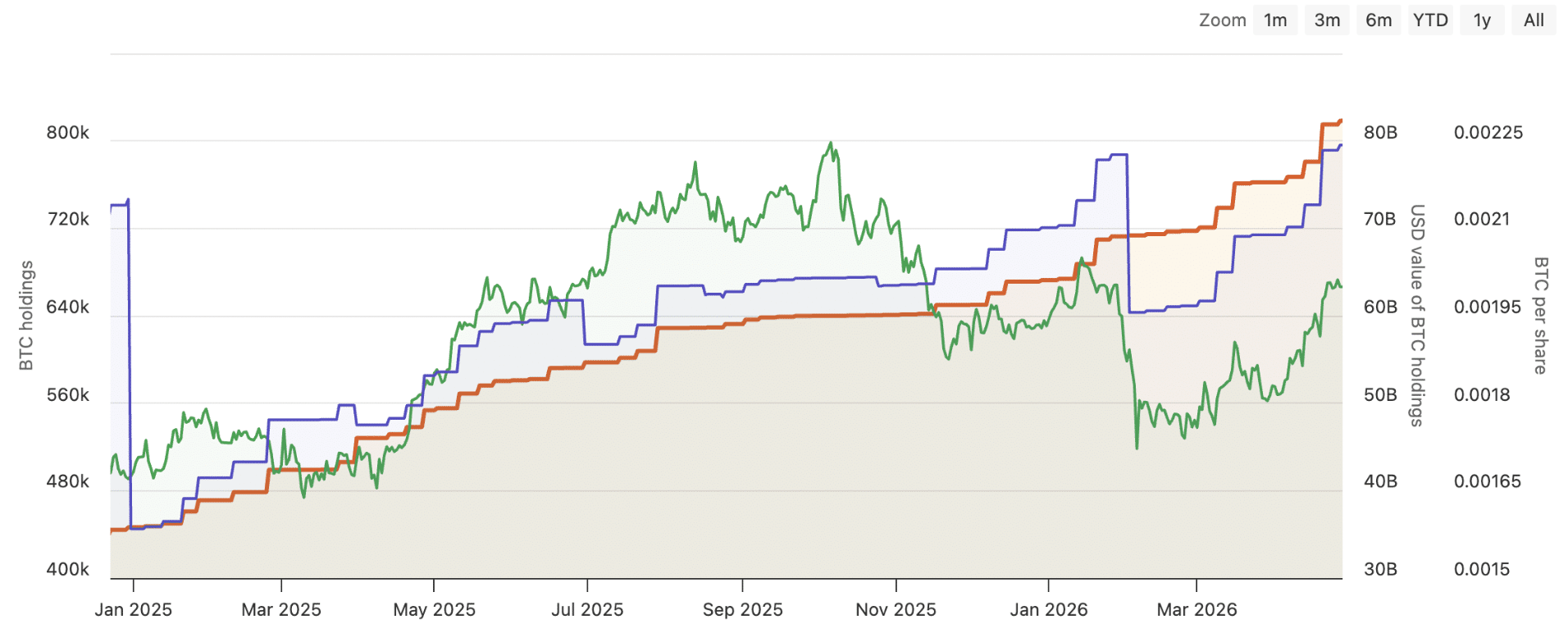 截至2026年4月26日,Strategy持有818,334枚比特币。