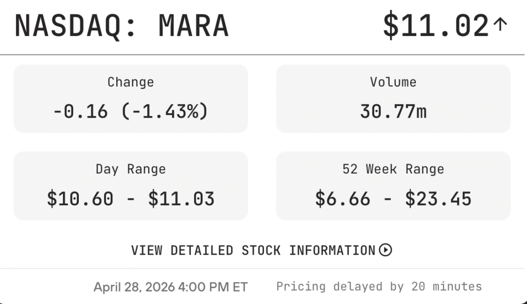 MARA Holdings | MARA | $8.04 | $11.84 | $10.92 | +35.8%