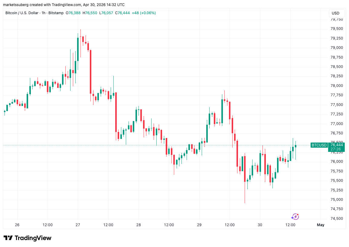周四华尔街开盘时段,比特币价格反弹至76000美元上方,但交易员对其短期走势仍持悲观态度。