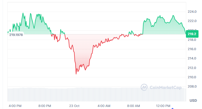 从市场结构角度来看,日内图表显示价格在215至224美元之间盘整。虽然上档区域屡次出现日内回落显示交易者仍保持谨慎,但成交量放大暗示资金正在积累而非投机交易。如果整体DeFi情绪转强,这种结构将为渐进式复苏奠定基础。