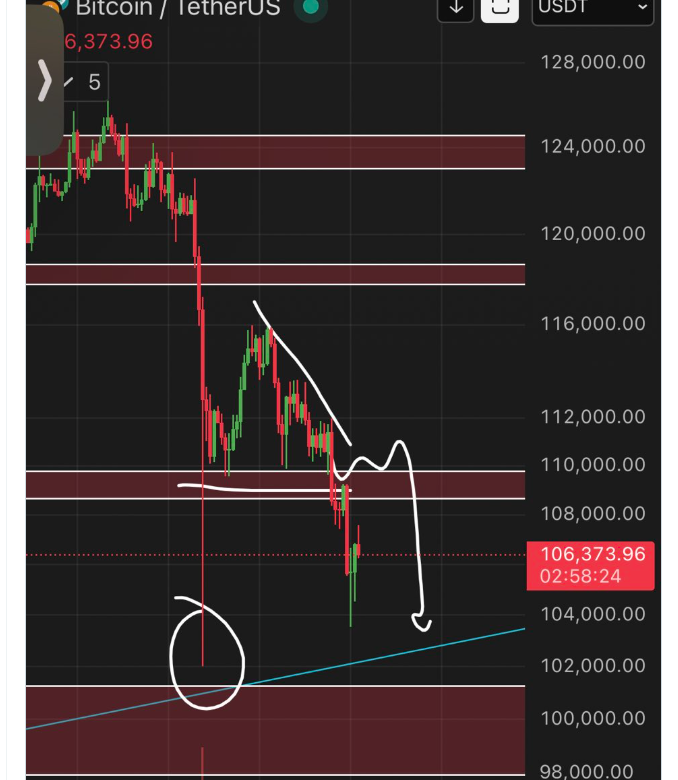 "BTC四小时更新:几乎触及下影线!我仍然认为会进一步下跌,下一个重要支撑位在98,000附近。如果出现机会,我会考虑在那里建立短线多头仓位。目前HTF仍呈现强烈看跌信号,因此我认为随着时间的推移还会继续下跌。"