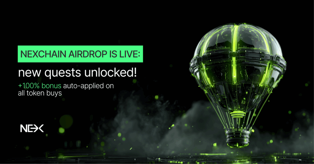 Nexchain的空投活动持续扩大,在主网上线前提供更多获利方式。本周有两项关键活动:限时任务——未来48小时内购买NEX可额外获得100点积分;以及10月16日至23日举行的双倍预售积分周——每完成一次购买任务可获得双倍积分。