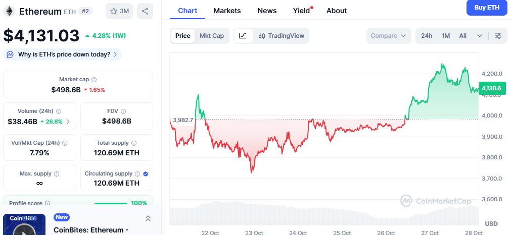 自10月闪跌至3400美元后,多头已将以太坊价格推回4000美元上方。本周该Layer-1代币上涨4%,投资者正瞄准更高目标。