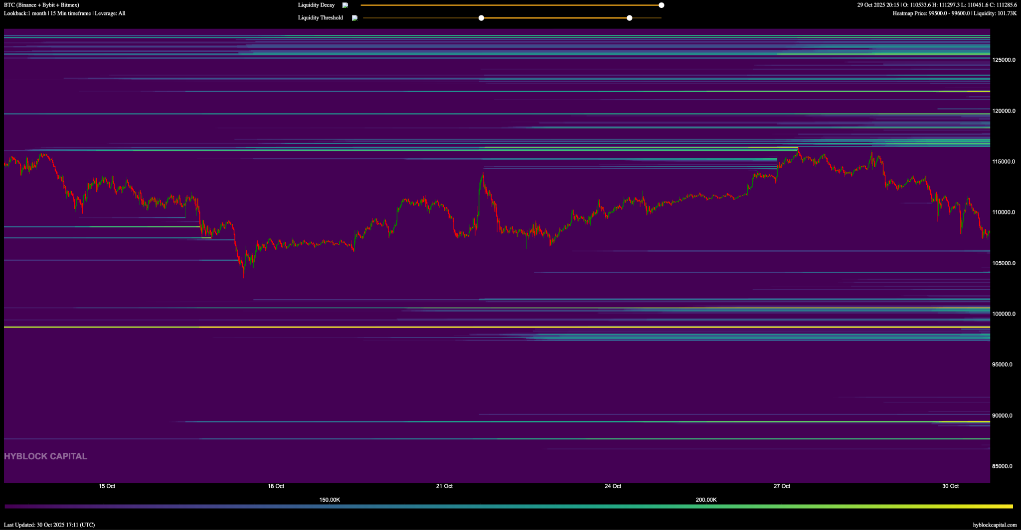 BTC/USDT 1个月流动性热图。来源:Hyblock