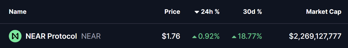 加密货币市场的"人工智能叙事"正重新获得关注,而Near Protocol(NEAR)正成为表现突出的项目之一。过去30天内,NEAR价格飙升近18%,除去价格变动,该项目的基本面亦持续增强。