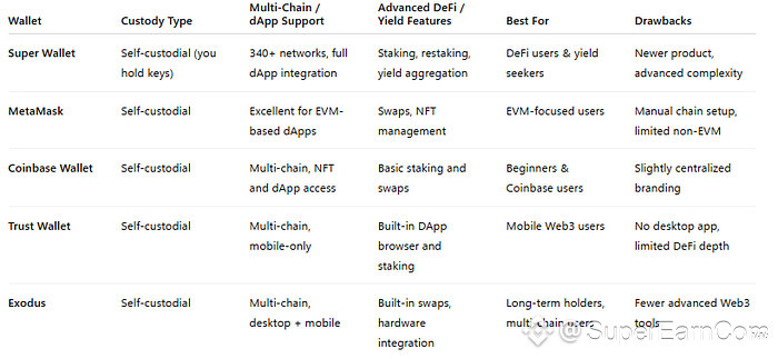 尽管如此,Super Wallet的创新性、扩展性及收益导向架构,使其成为2025年最先进的Web3钱包。