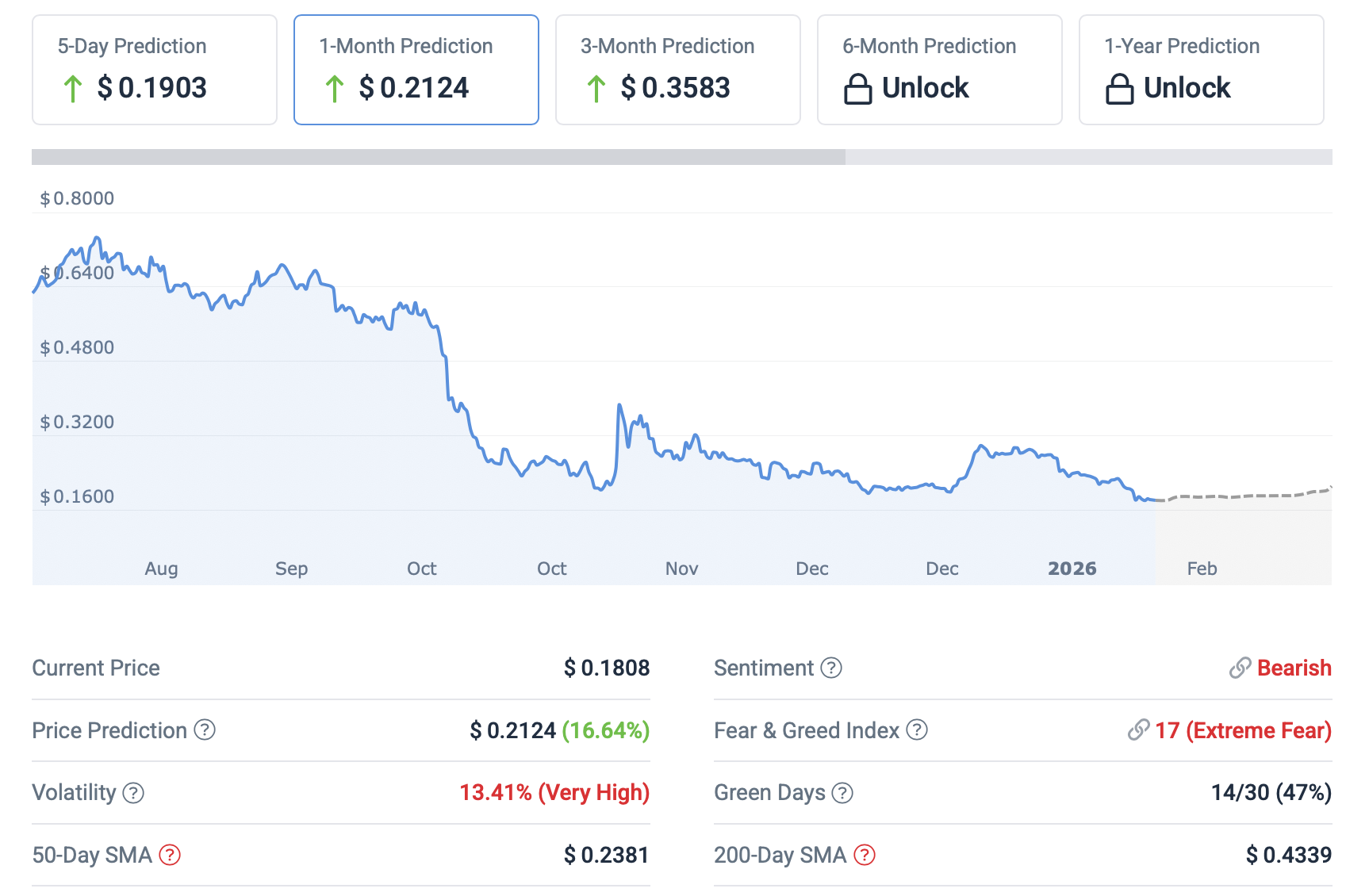 FET目前在市场中占据独特地位,不仅是依靠情绪的普通代币。其愿景与投资人工智能的家族办公室资金流向高度契合,预测显示FET在2026年底有望达到0.46美元,涨幅154%,2050年可能达到1.13美元。