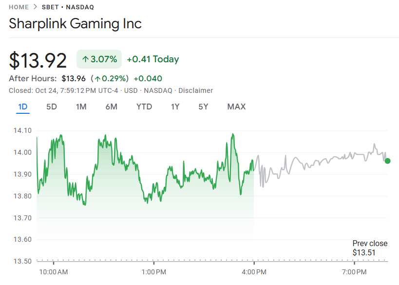 Sharplink Gaming股票走势 | 来源:谷歌财经