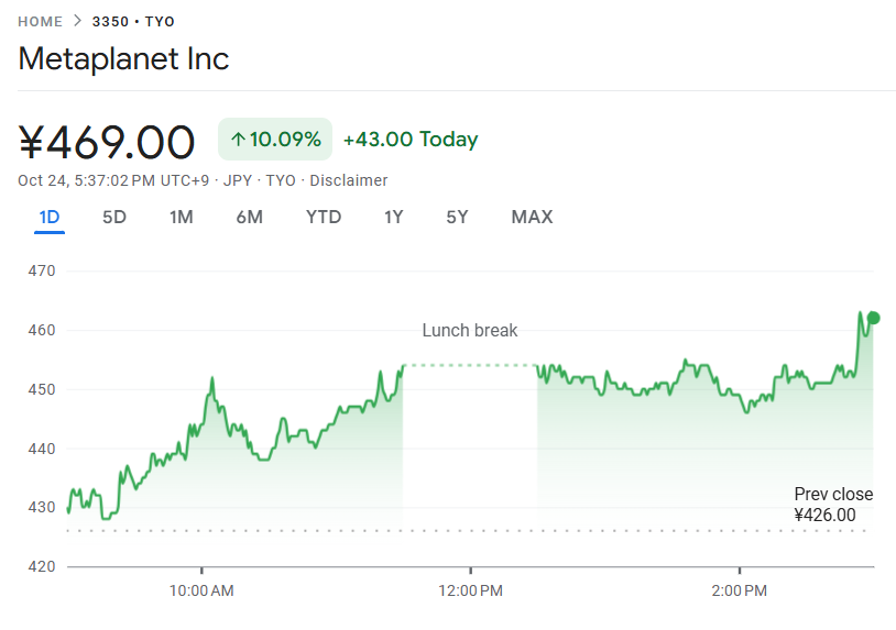 本月公司再斥资6.1567亿美元购入5,268枚比特币,使得2025年迄今比特币收益率达497.1%。尽管10月17日受加密市场暴跌影响股价下挫6.5%,但随着市场回暖,MTPLF现报469日元,单日涨幅超10%。该股年内波动剧烈,交易区间为104.50-1,930日元。