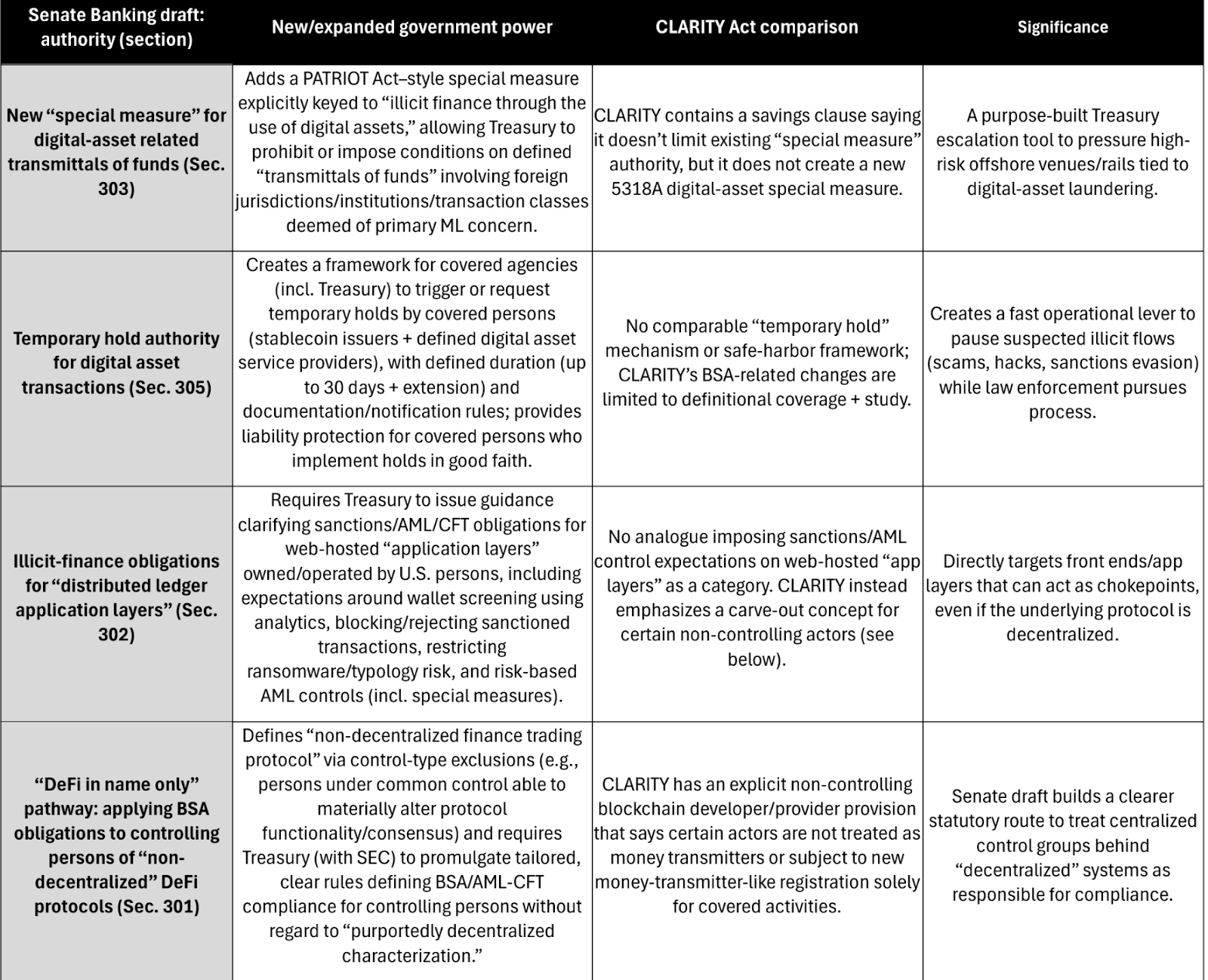 在一份研究报告中,银河数字警告称参议院的新提案远超以往的监管尝试,引入了针对加密资产的“特别措施”授权。这将允许财政部在没有正当程序的情况下,将外国司法管辖区、金融机构或整个类别的数字资产交易指定为主要的洗钱关注对象。银河数字明确将此与《爱国者法案》下创建的监控工具相类比,指出其可广泛适用于离岸场所和交易通道以限制资金转移。这一潜在的金融监管权力扩张被描述为9·11事件以来最大规模的监管升级,无疑是一记警钟。