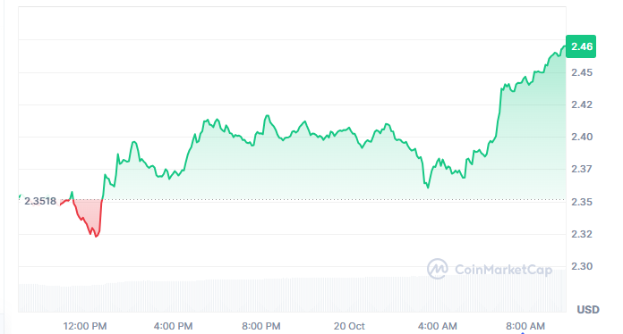 该资产市值约1479.2亿美元,日内涨幅5.11%。单日交易量达40.4亿美元,增幅超53%,显示市场活跃度回升。分析师将此解读为2.34美元需求区间的早期吸筹行为,反弹结构正在形成。
