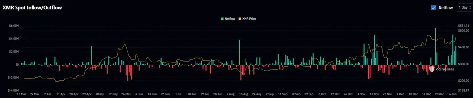 门罗币日益增长的现货流入反映了关于隐私币的叙事升温。在加密货币走向主流的当下,该板块在第四季度的表现证实了健康的需求。