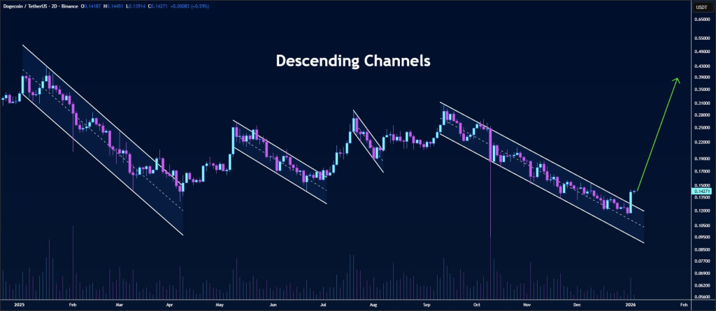 与此同时,据交易员Tardigrade分析,狗狗币日线图MACD柱状图显示上行动能正在增强,表明当前上涨趋势可能具备持续动力。