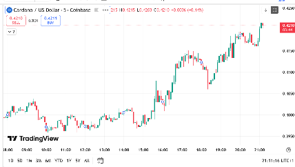 卡尔达诺在今年开局更为稳健。ADA价格目前徘徊在0.4210美元附近,24小时内上涨了4.55%。这一上涨得益于近150亿美元的市值以及日均交易量的显著跃升。技术型投资者预期更高的低点和持续的需求区域,将此视为市场情绪改善的迹象。