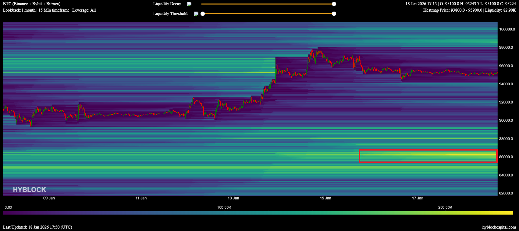 尽管如此,交易员Daan Crypto Trades警告称,此前一个关键的突破位——2025年93,500美元的年度开盘价——现已失守。他在2026年1月19日表示:“当传统金融有机会对周末宣布的新关税做出反应时,BTC在期货开盘后直線下跌。目前价格在4小时图的200EMA均线处获得支撑,但已失去了突破位。”