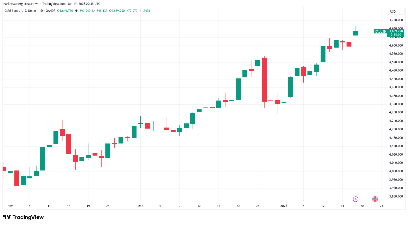 然而,尽管风险资产短期内表现犹豫,贵金属则持续从混乱中获益。黄金在本周伊始首次逼近每盎司7,000美元,而白银也创下了94美元的历史新高。
