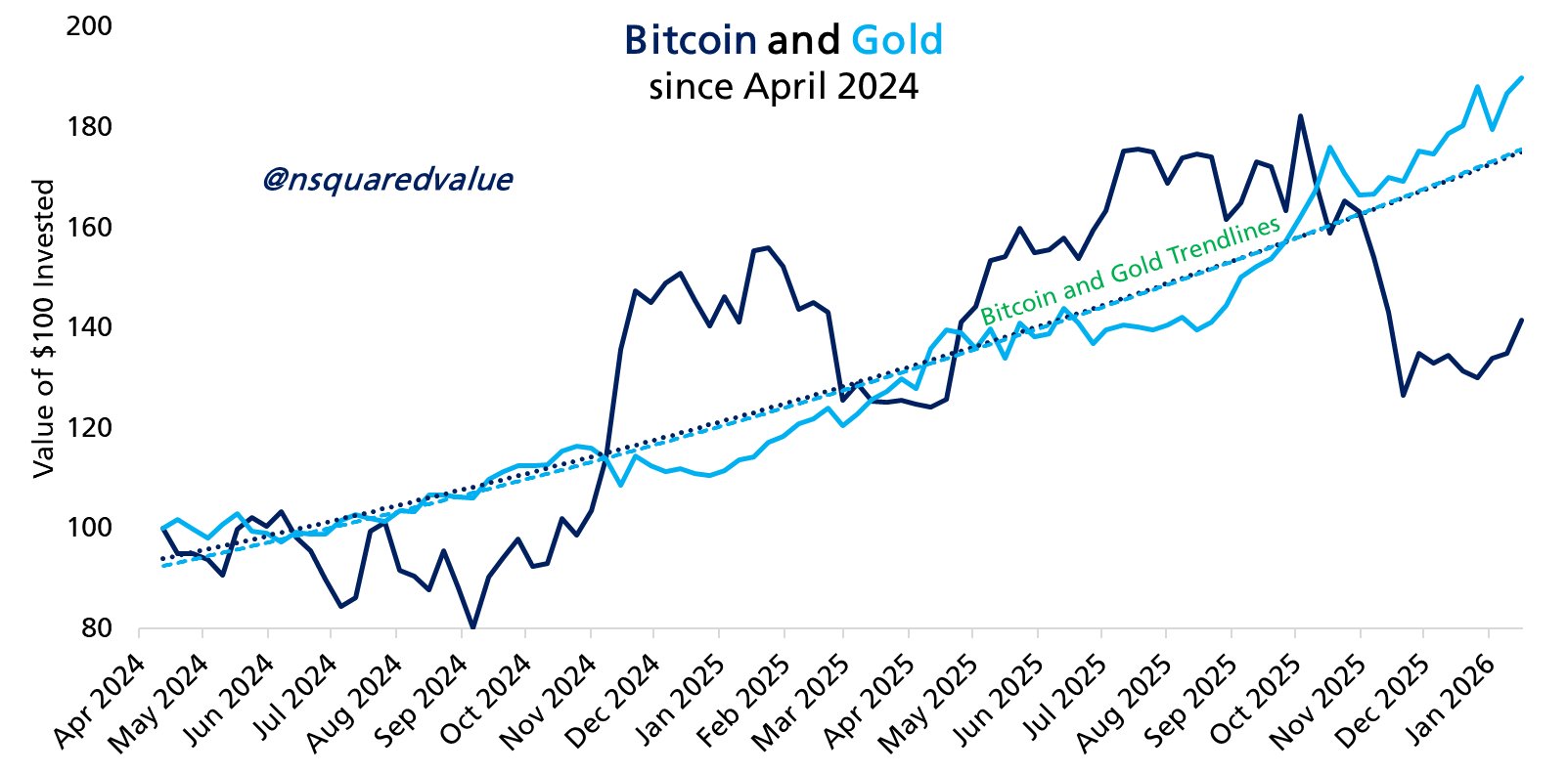 网络经济学家Timothy Peterson在评论中对比特币赶上黄金历史走势的能力保持信心。他在周末告诉X的关注者:“比特币和黄金的趋势线几乎完全重合。两者都朝着同一个方向前进,只是路径不同。”