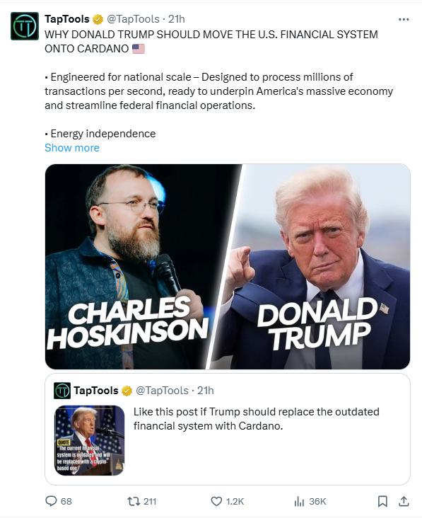 分析平台TapTools最新发帖引发新一轮讨论,推测卡尔达诺可能成为未来美国金融网络的基础架构。该平台特别指出其权益证明机制相较工作量证明系统显著降低能耗的优势,这与美国对科技金融领域的节能目标高度契合。此外,卡尔达诺稳定的运行记录、全球化验证节点网络以及基于学术研究的底层设计也获得重点关注。