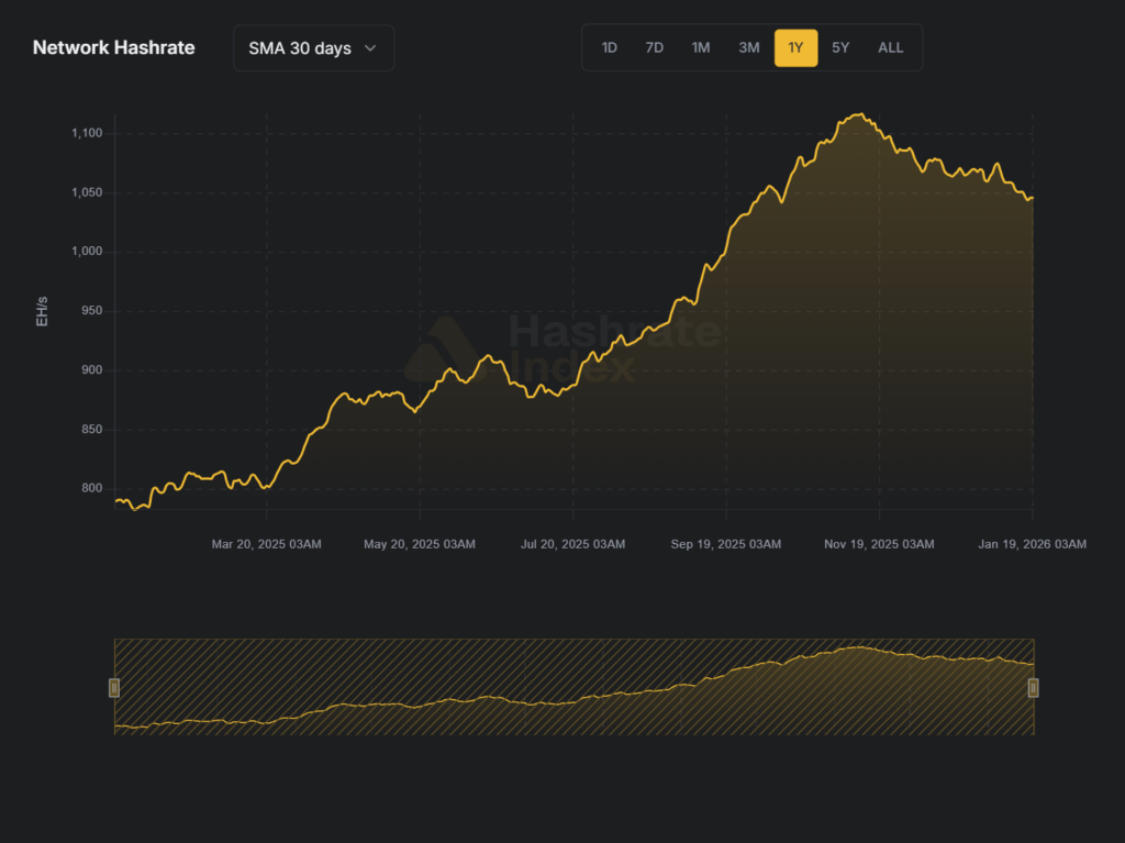 近期数据显示,比特币算力跌破每秒1泽哈希的关键水平。尽管此前矿工盈利状况刚有所改善,此次回调却紧随而至。然而,这一下降或许并非完全源于比特币自身因素。部分专家认为,算力下滑与人工智能热潮引发的电网电力竞争加剧有关。