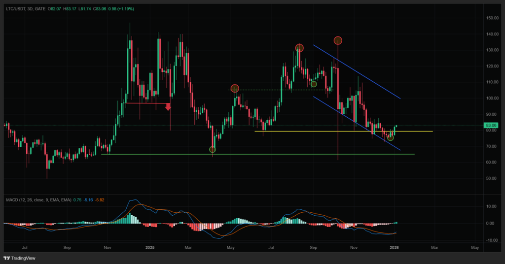莱特币坚守关键支撑后突破结构,目标直指87美元