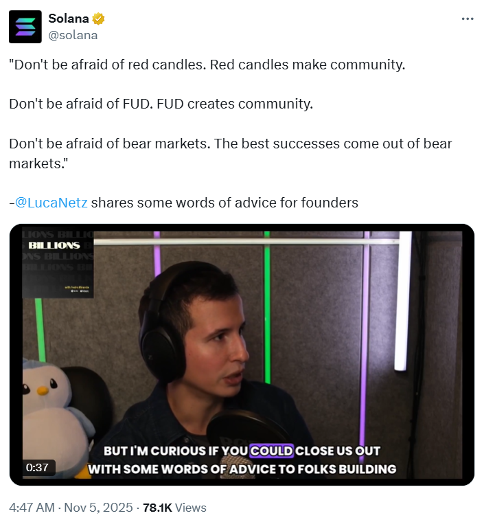 强调当前调整更像是数月上涨后的技术回调而非崩盘。观察人士认为,当流动性重回山寨币且情绪改善时,市场将启动复苏,而作为成长型结算网络,Solana仍将是焦点。