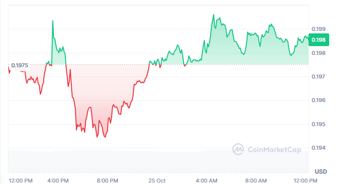 日内图表呈现V型反弹(0.194-0.1995美元),显示低价区存在强力买盘,0.195美元支撑位仍获市场信任。0.198-0.200美元区间多次受阻形成短期阻力位,突破后有望延续涨势。