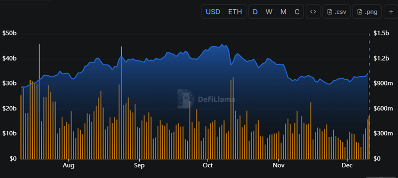 据DeFiLlama数据显示,Aave的总锁仓价值虽曾短暂跌破300亿美元,但目前已回升至340亿美元以上。代币交易量本周也呈现强劲反弹态势。