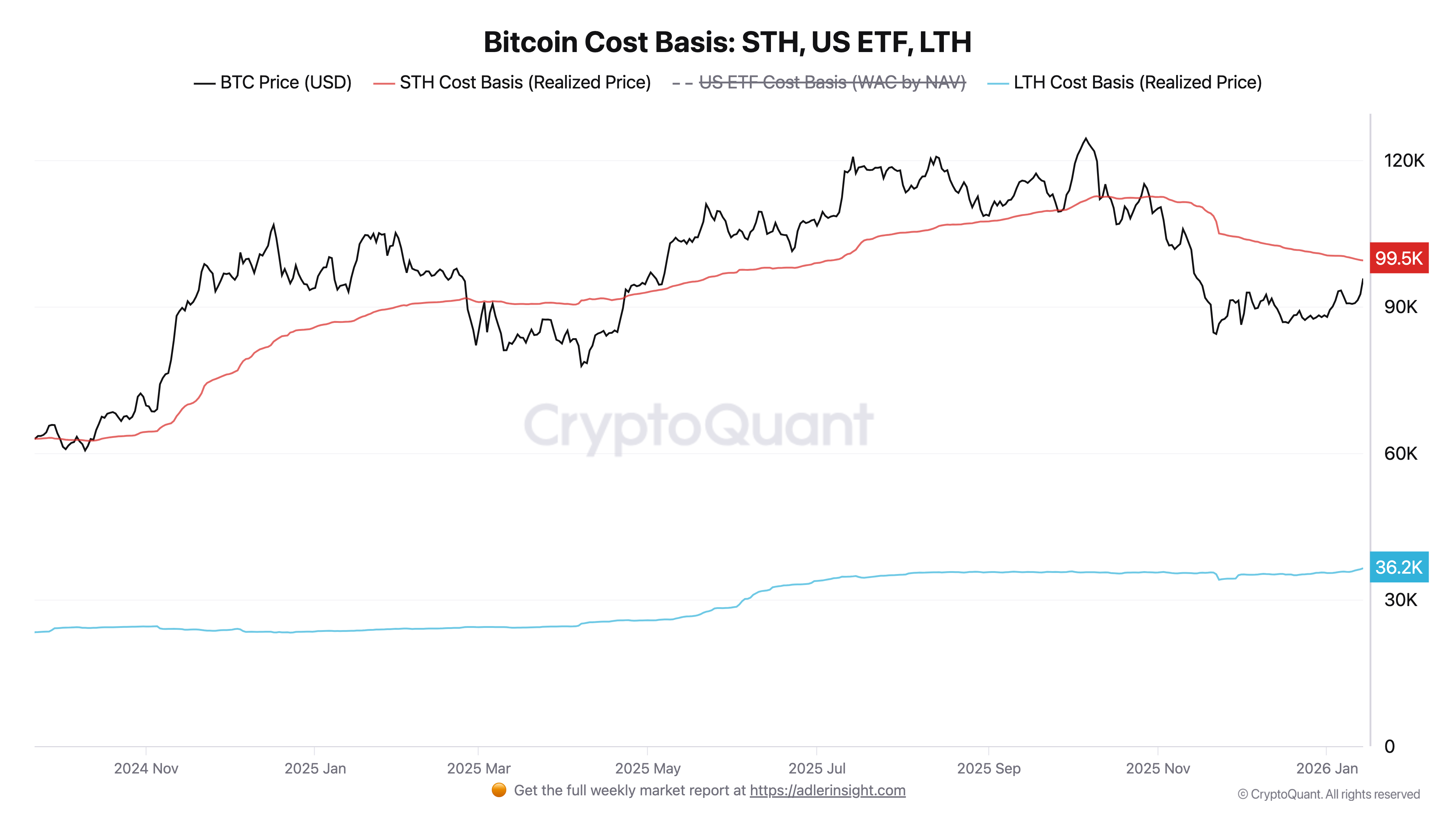 CryptoQuant另一位贡献者Axel Adler Jr.的独立数据显示,短期持有者群体的总成本基础为99,600美元,这强化了该区域作为未来潜在阻力点的判断。