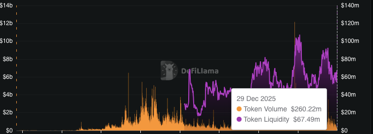 2025年12月29日,Chainlink代币交易量急剧攀升至2.6022亿美元,同时流动性峰值达到6749万美元。这轮飙升反映出市场对Chainlink的关注度提升,表明更多参与者正在积极入场。
