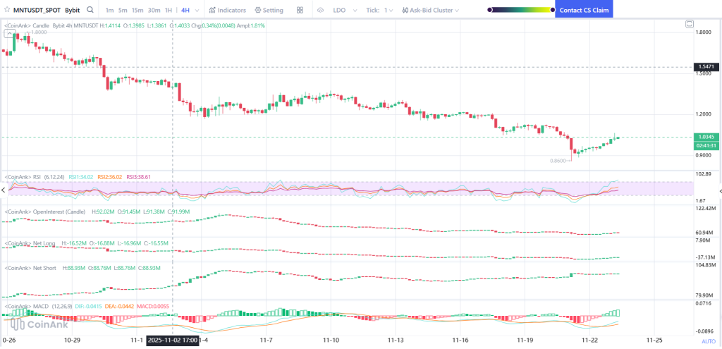 在经历了数周缓慢而平稳的交易后,Mantle (MNT) 价格正试图重新站稳脚跟。该代币在跌至 0.86 美元后,现已回升至 1.03 美元上方,买家似乎终于再次表现出兴趣。
