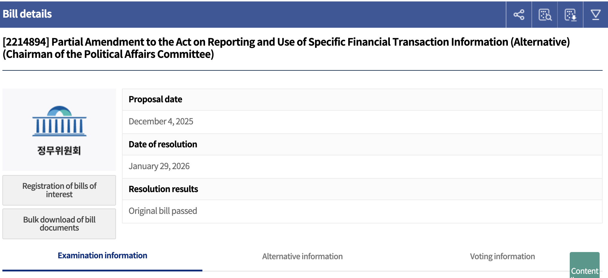 立法者于周四通过了《特定金融交易信息报告与使用法》的修正案,该法是韩国虚拟资产反洗钱制度的关键支柱。这项在国会全体会议上通过的修订法案,将在颁布六个月后生效。