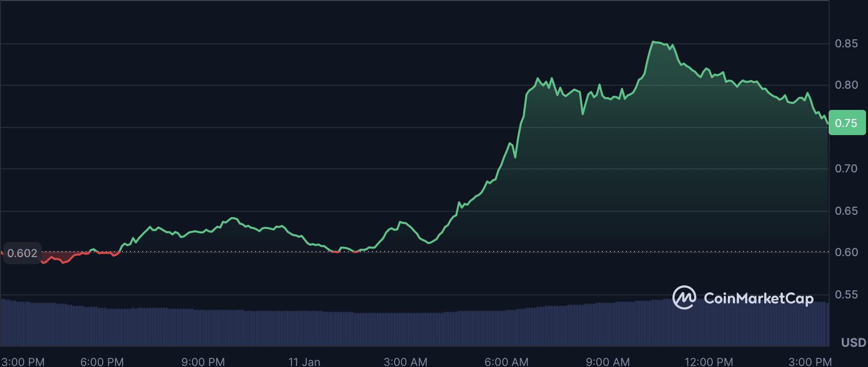 迷因币我踏马来了在过去一日延续其爆发式涨势,涨幅达19.4%。此前,它于1月8日成功接入币安Alpha并获得Gate永续期货上币。这些进展引发其交易量激增383%,推动日成交额达到约5.11亿美元。链上数据显示鲸鱼参与度正在上升,而社交媒体关于其可能登陆币安期货的猜测进一步放大了动量。