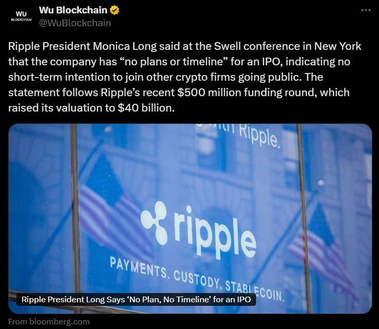 不过瑞波总裁Monica Long明确表示公司暂无上市计划。