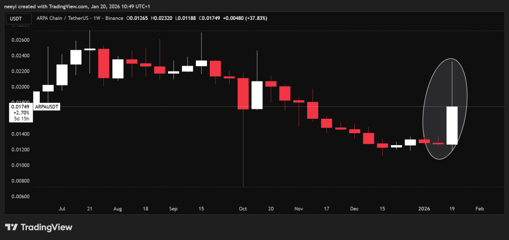 ARPA币价近日展现出令人瞩目的突发性强势行情,单日涨幅高达约80%,创下近月来最强劲的单日表现。此番上涨并非凭空而来,多项基本面进展早已悄然铺垫,价格走势最终反映了这一系列转变。其动能显然植根于实质生态进展,而非单一事件驱动。ARPA正在重塑定位、拓展生态边界并明确长期发展路线,这些变化如今已清晰投射于币价表现之中。