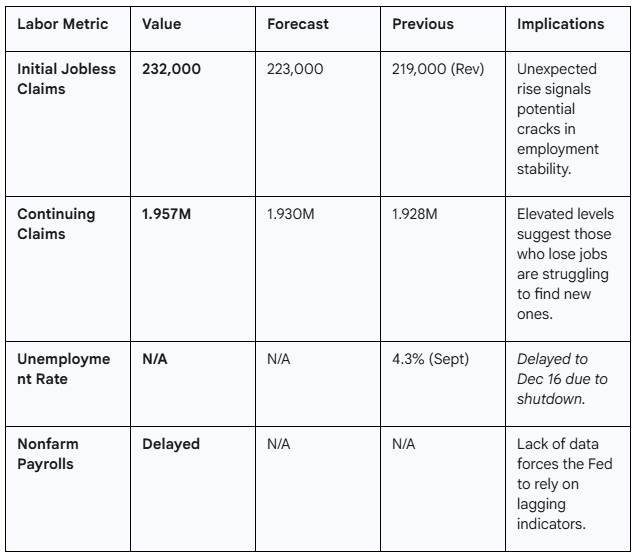 美国长达43天的政府停摆造成关键经济数据流中断。劳工统计局确认无法发布完整的10月就业报告,但一次"技术故障"导致初请失业金数据意外提前泄露。数据显示劳动力市场正在疲软但未崩溃——这种"炼狱"状态既不能让通胀鹰派安心,也无法安抚衰退鸽派。