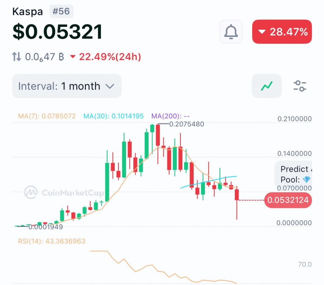 撰写本文时,Kaspa代币交易价格低于0.06美元。过去一个月其价值增长约12%。分析师预测,若$KAS的使用趋势持续,2025年底前可能创下0.21美元的历史新高。