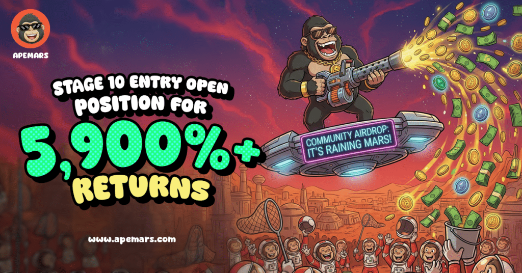 APEMARS是采用分阶段预售模型的迷因币,通过更低入场价格和结构化回报潜力奖励早期参与者。其透明度、路线图和社区参与度使其被视为顶级加密预售项目。