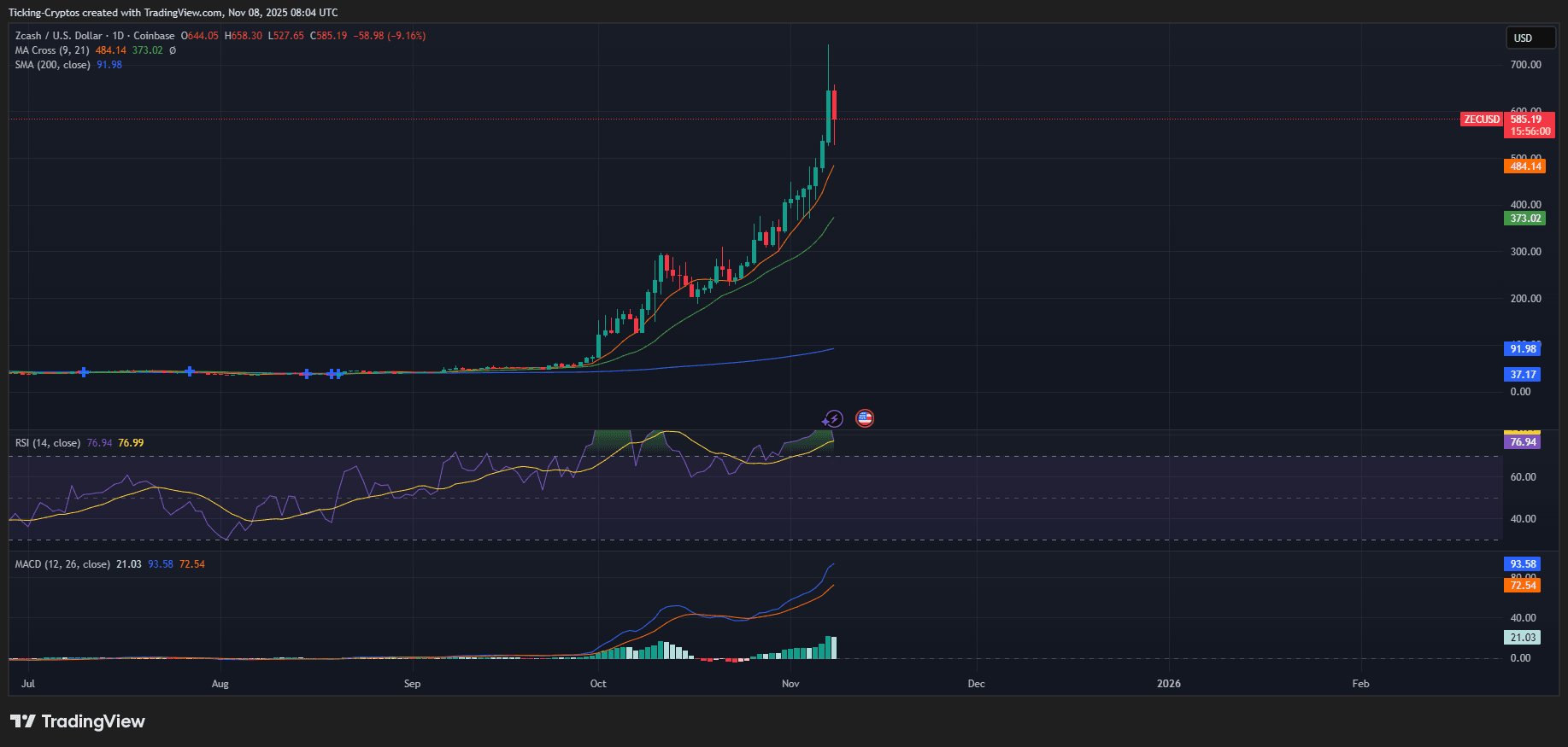 ZEC在数周内从约90美元跃升至680美元以上,涨幅逾650%。