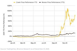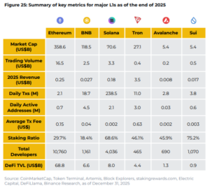 在一层网络中,以太坊在开发者活动和DeFi流动性方面保持主导地位,而Solana则维持高交易量,并通过协议收入支撑机构接入。BNB链凭借其零售用户基础推动现货与衍生品活动及稳定币结算,成为年内表现最强劲的生态之一。