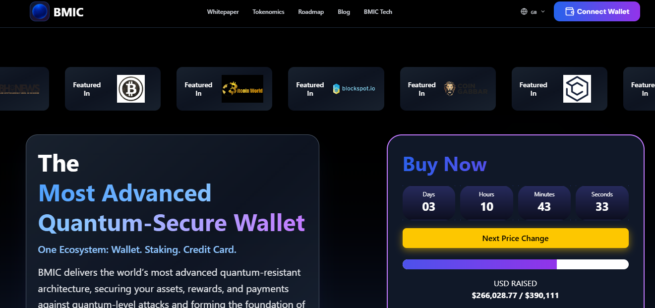 BMIC AI自称是首个抗量子钱包生态系统。该项目将区块链与后量子密码学结合,旨在保护资产免受未来计算威胁。