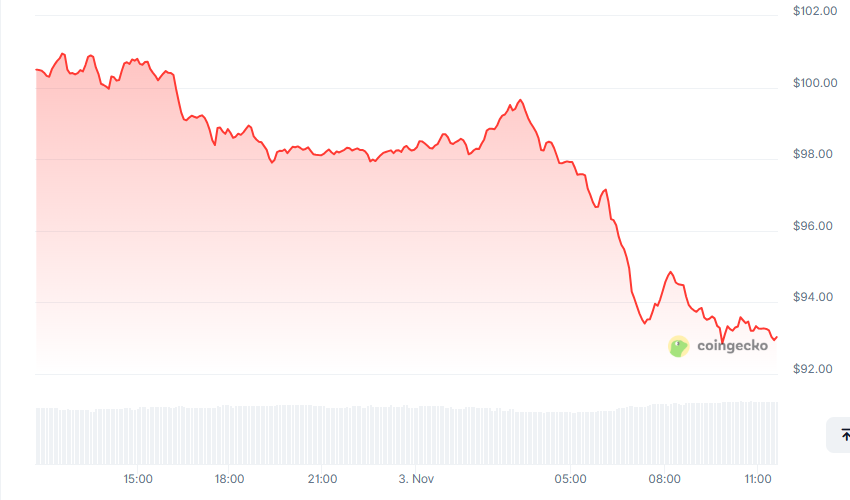 莱特币近期交易时段下跌7.4%,从100.82美元高点回落至93.02美元。约6.98亿美元的24小时交易量显示交易者倾向于增持而非离场。