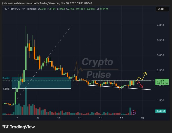 随着近期市场活跃度提升,Filecoin价格正接近关键支撑区域。交易者密切监测2.20-2.25美元区间,任何明确突破都将决定后续走势。虽然价格仍处于扩张楔形内部,但成交量增长已显露早期布局信号。