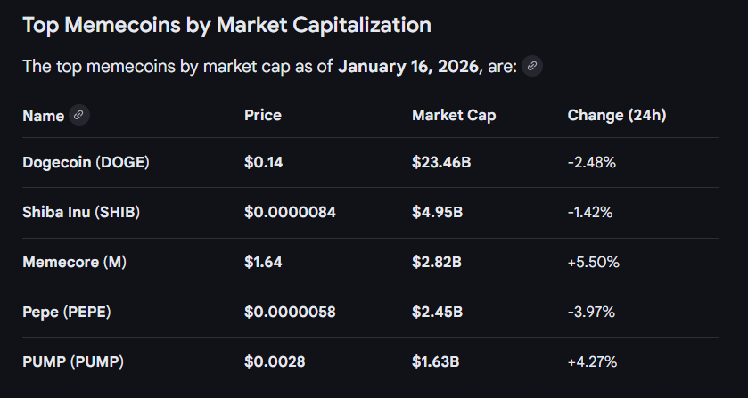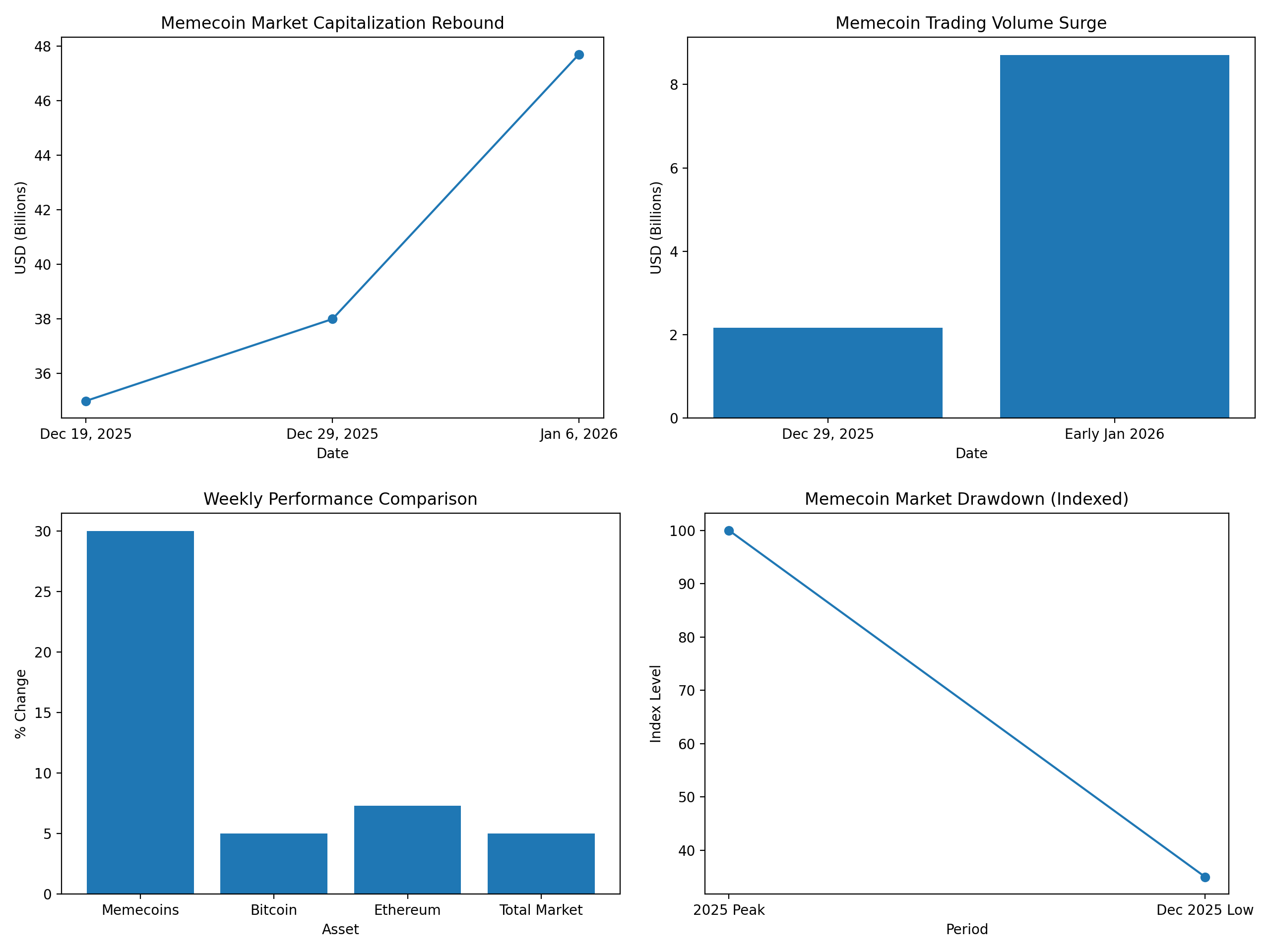此举标志着今年加密货币市场最强劲的短期复苏之一,此前在2025年底经历了长时间的下跌,当时迷因币的表现逊于大多数主要山寨币。虽然反弹重振了市场对该领域的兴趣,但也凸显了熟悉的结构性问题:极高的波动性、稀薄的流动性,以及主要由市场情绪而非基本面驱动的价格走势。