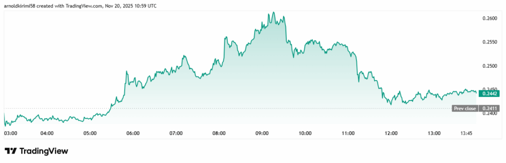 CoinMarketCap数据显示,PI交易价格接近0.243美元(日内上涨6.8%),市值约20.2亿美元,24小时交易量激增354%至7240万美元。