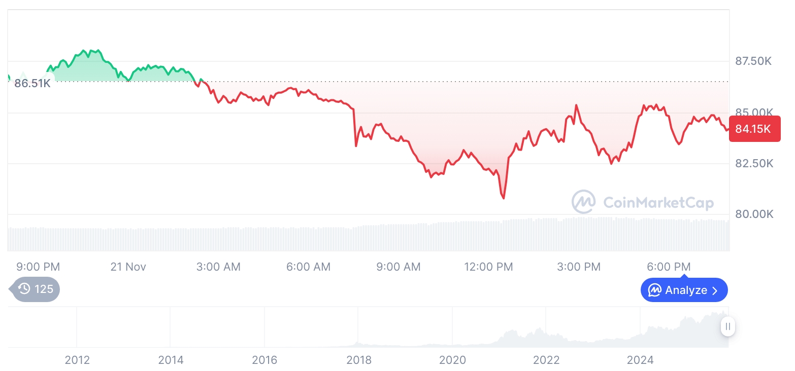 比特币跌至八万美元区间,月度跌幅创两年新高