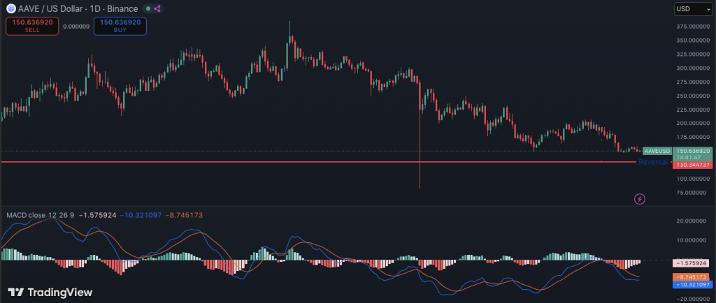 AAVE近期展现出强劲势头,成功突破看涨旗形形态。截至发稿时,AAVE价格为150.56美元,过去24小时下跌1.23%。交易员正在等待价格可能的反弹或进一步下跌。