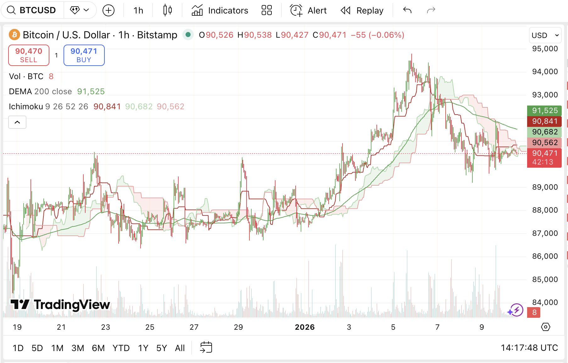当前的比特币价格为 90,430 美元,日内微幅下跌 0.74%。比特币的市值目前约为 1.8 万亿美元,巩固了其作为全球市场主导数字资产的地位。交易量为 276.3 亿美元,尽管在过去 24 小时内下降了超过 27%,表明短期活动有所减少。