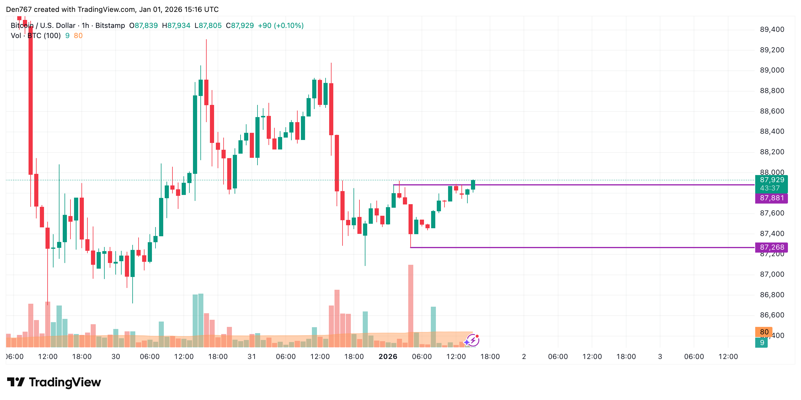 比特币价格正尝试突破87,881美元局部阻力位。若多头能保持主动权并将价格维持在该水平之上,预计将继续上探88,500美元区间。