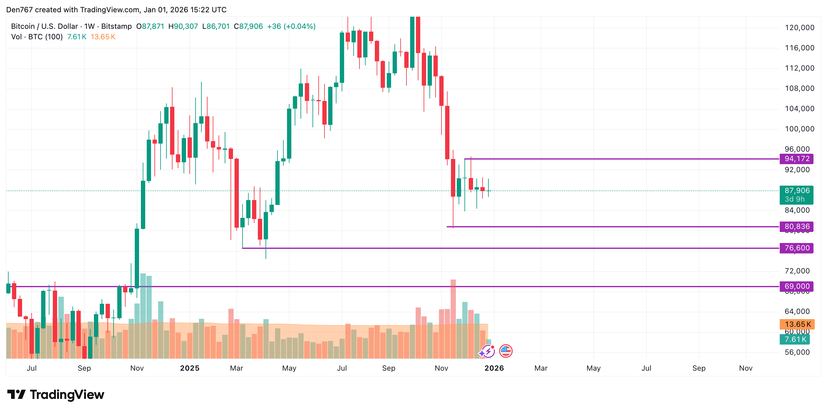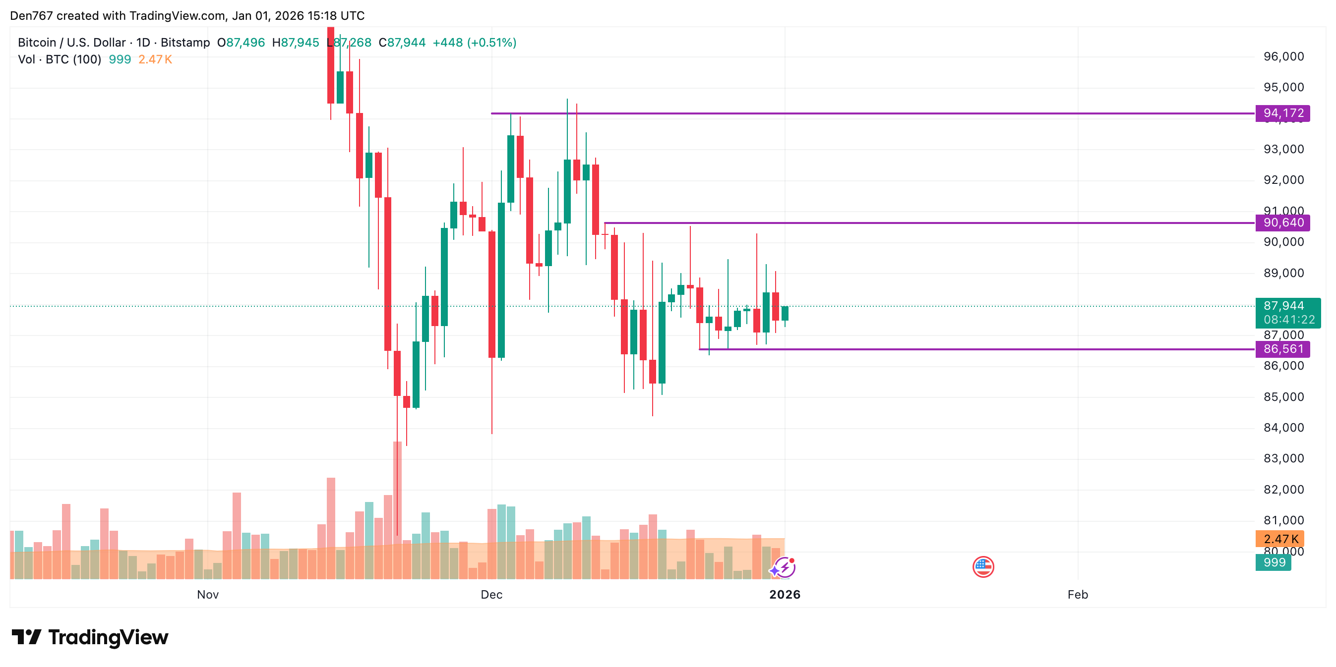 截至发稿,比特币交易价格为87,906美元。
