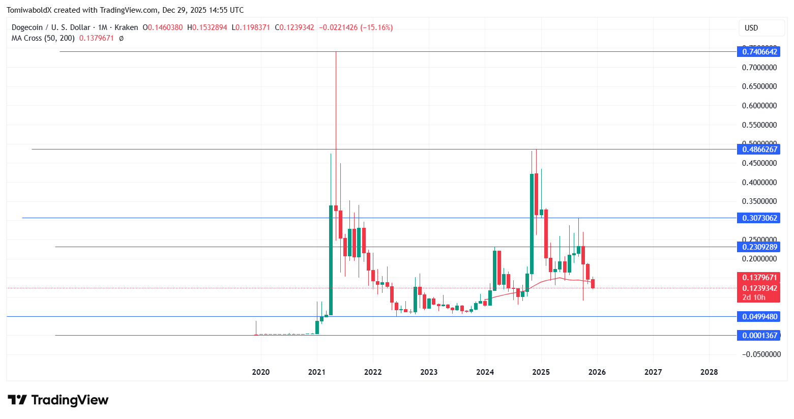 以狗狗为主题的表情包加密货币狗狗币正面临关键考验,其价格在2025年收官之际展开最后一搏。CoinGecko数据显示,由于迷因币今年未能获得预期市场热度,狗狗币年度跌幅已达62%。截至12月,该币种累计下跌16.39%,或将迎来自9月以来的连续第三个月下跌。